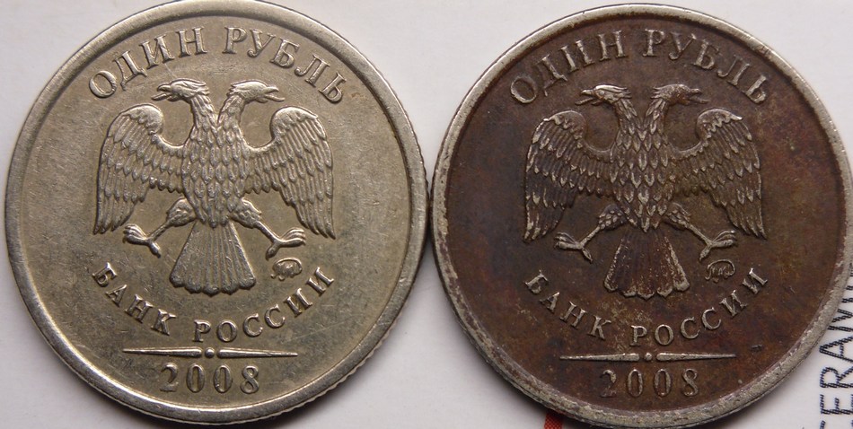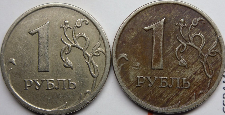 Представьте как выглядит штемпель, изображение на нём негативное. Каждый штемпель шлифуют, при это снимается металл вместе с частью изображения, при этом по краю металл снимается легче. Получается так называемая линзообразная шлифовка. Обратите внимание, что поле монеты поднимается к канту.