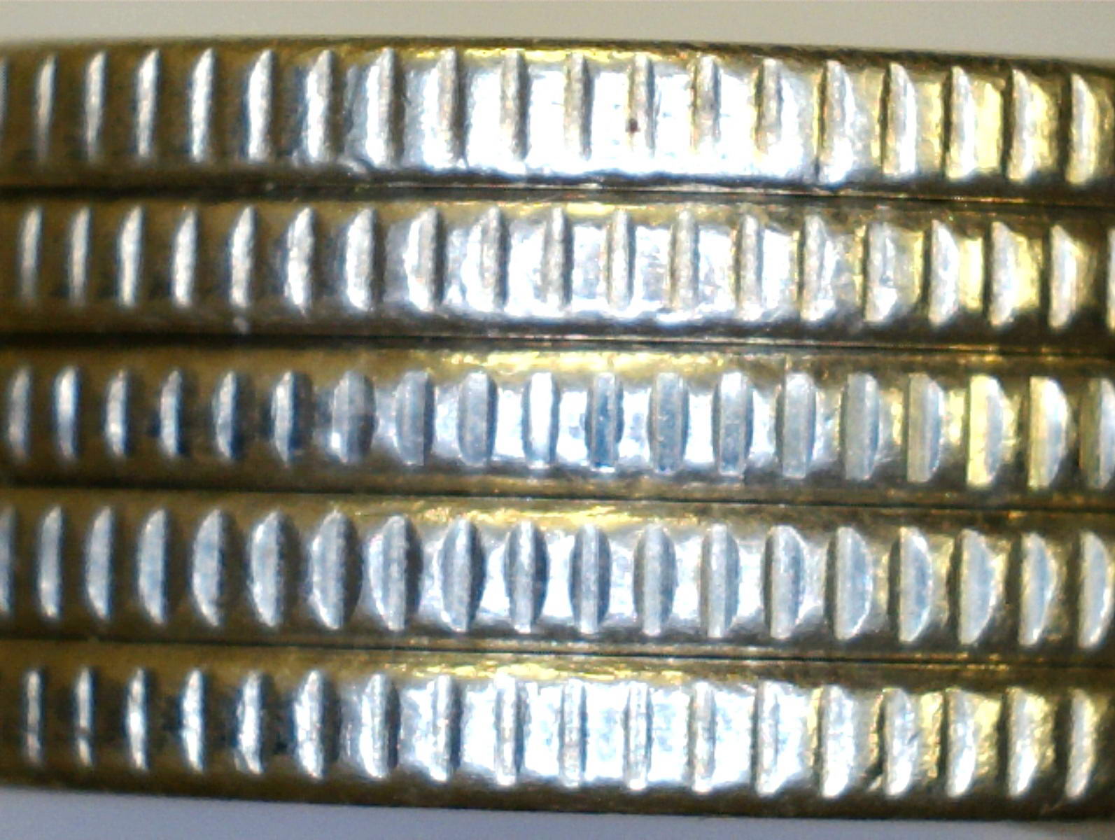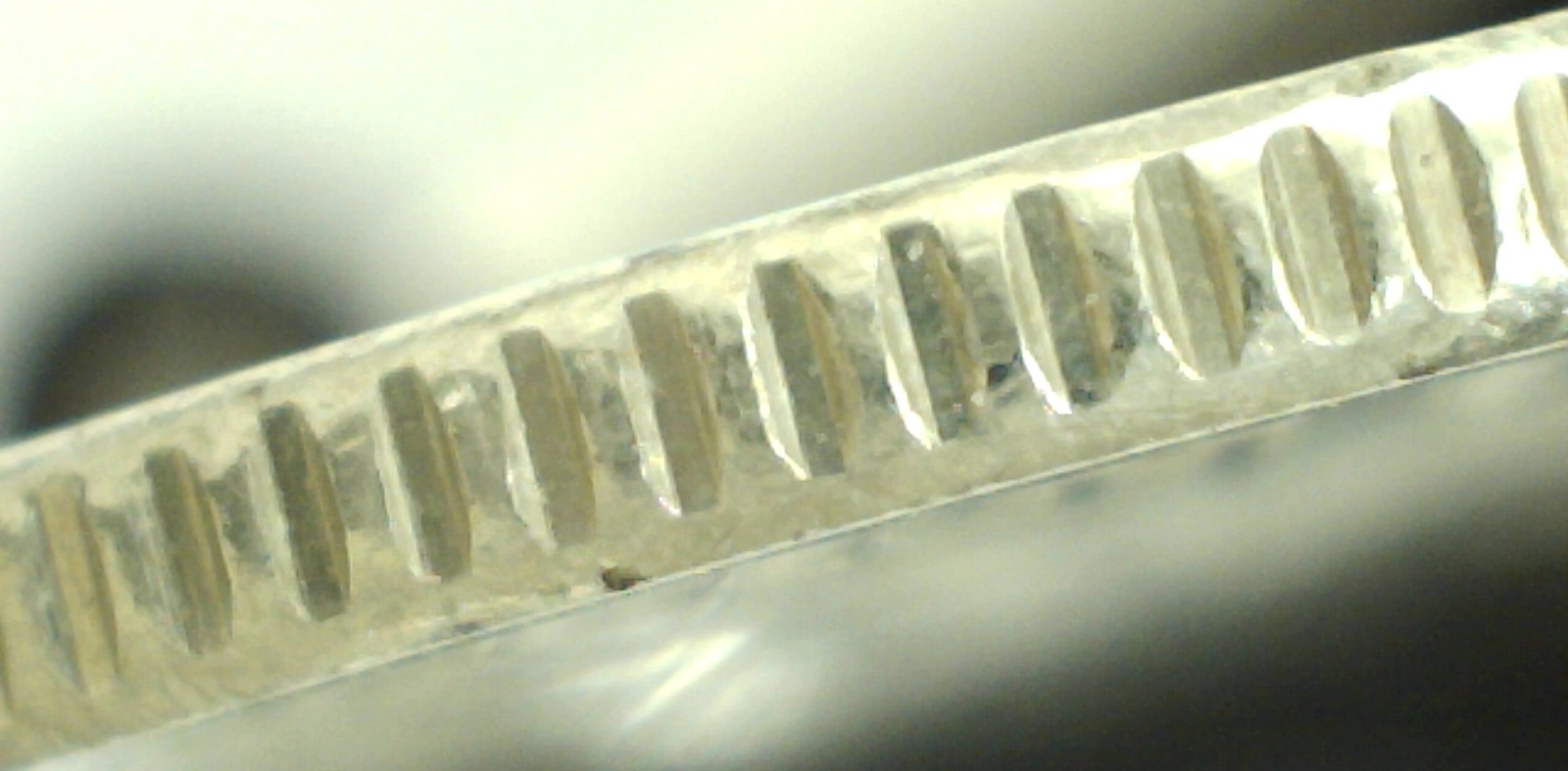 Фото сделал на сканере и "глазом",лучше не получаются.На средней монете просечки одинаковые по всей окружности.