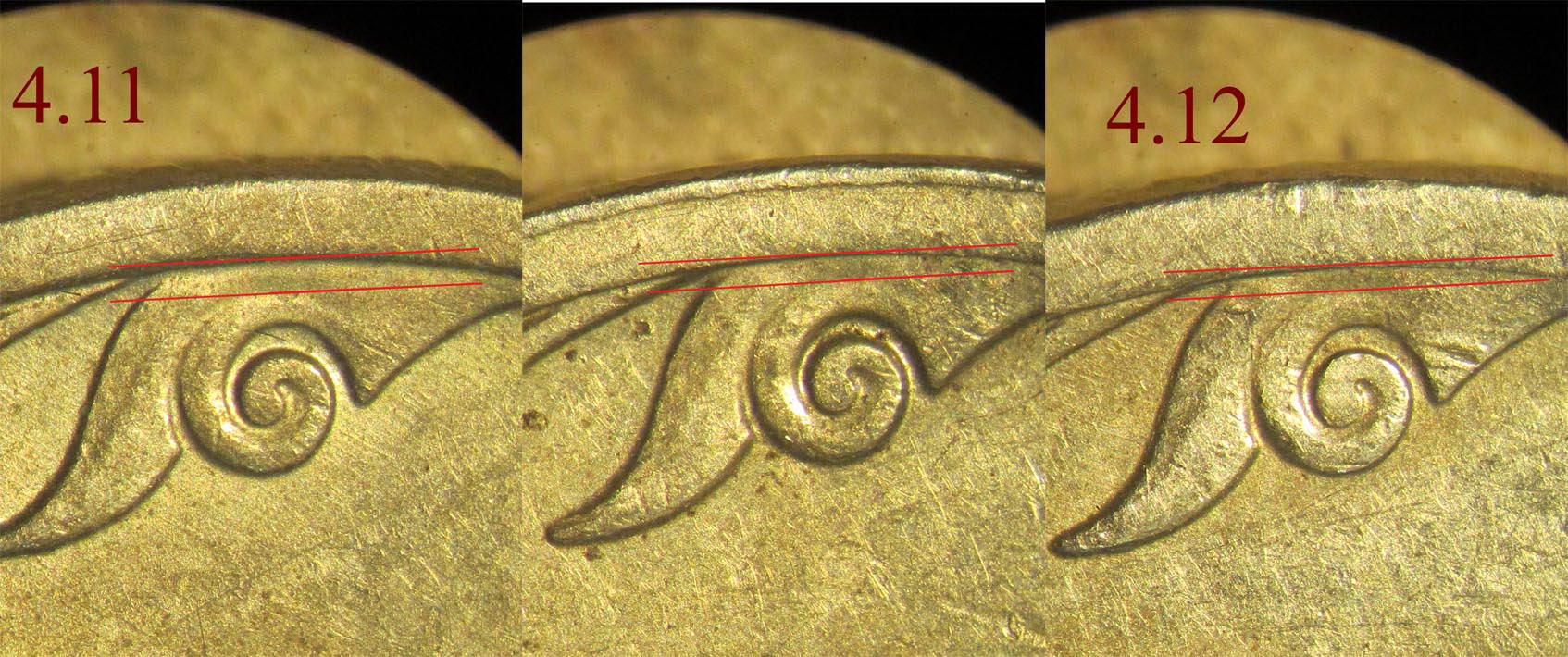 Сделал фотографии 4.11, 4.12 и этой монеты в районе 5ч завитка, подогнал, там всё видно.