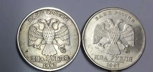 Потому,что Вам есть чем теперь заморочиться,вес 2р1997ммд -3.1 ,а вес рубля 2008ммд-3.25,осталось распознать, чем они покрыты