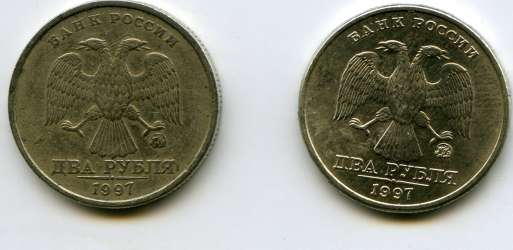 Здравствуйте!Монеты попали из обращения 2 рубля 1997 года ММД. Блеск и отсутствие характерных следов долгого обращения.