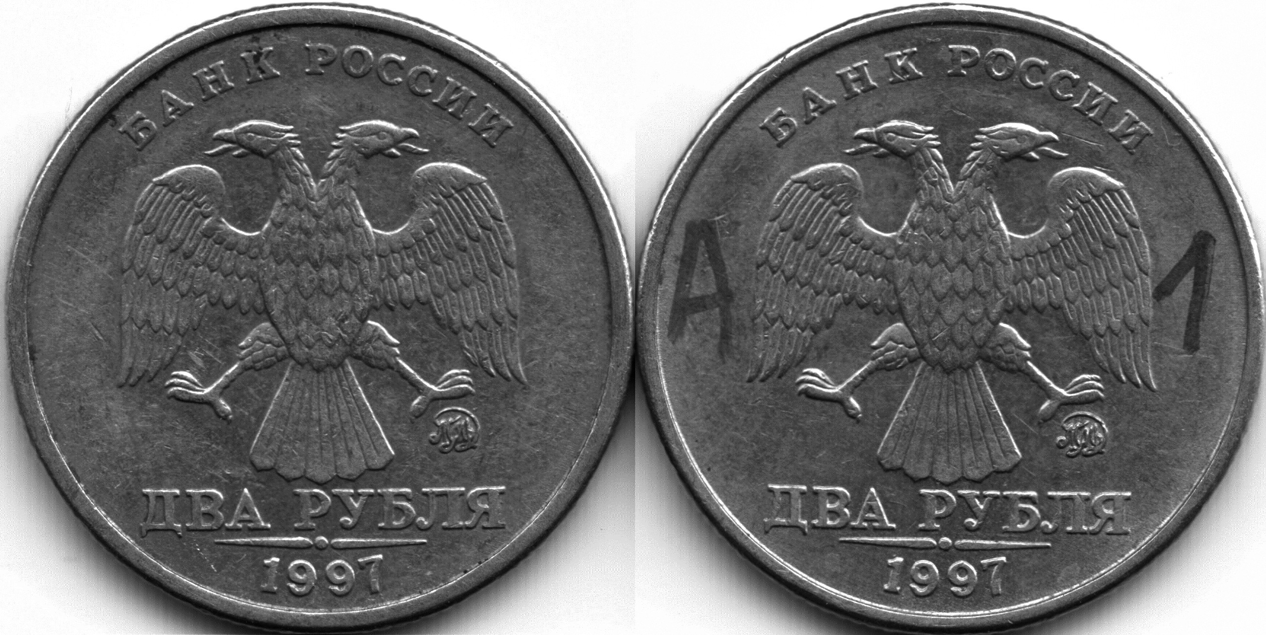 Да я тоже поторопился, думал левая 1.3А2 и тему поднял. Но когда помыл, получил 1.4А2, пришлось название темы и текст менять, удалить то нельзя. Т.е. первоначально тема называлась: "2 рубля 1997 ммд 1.3А2?".