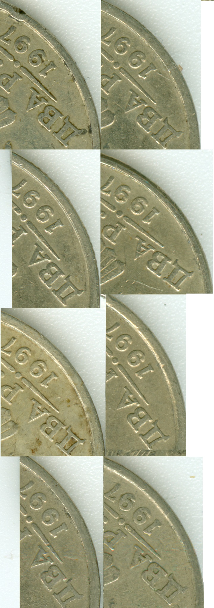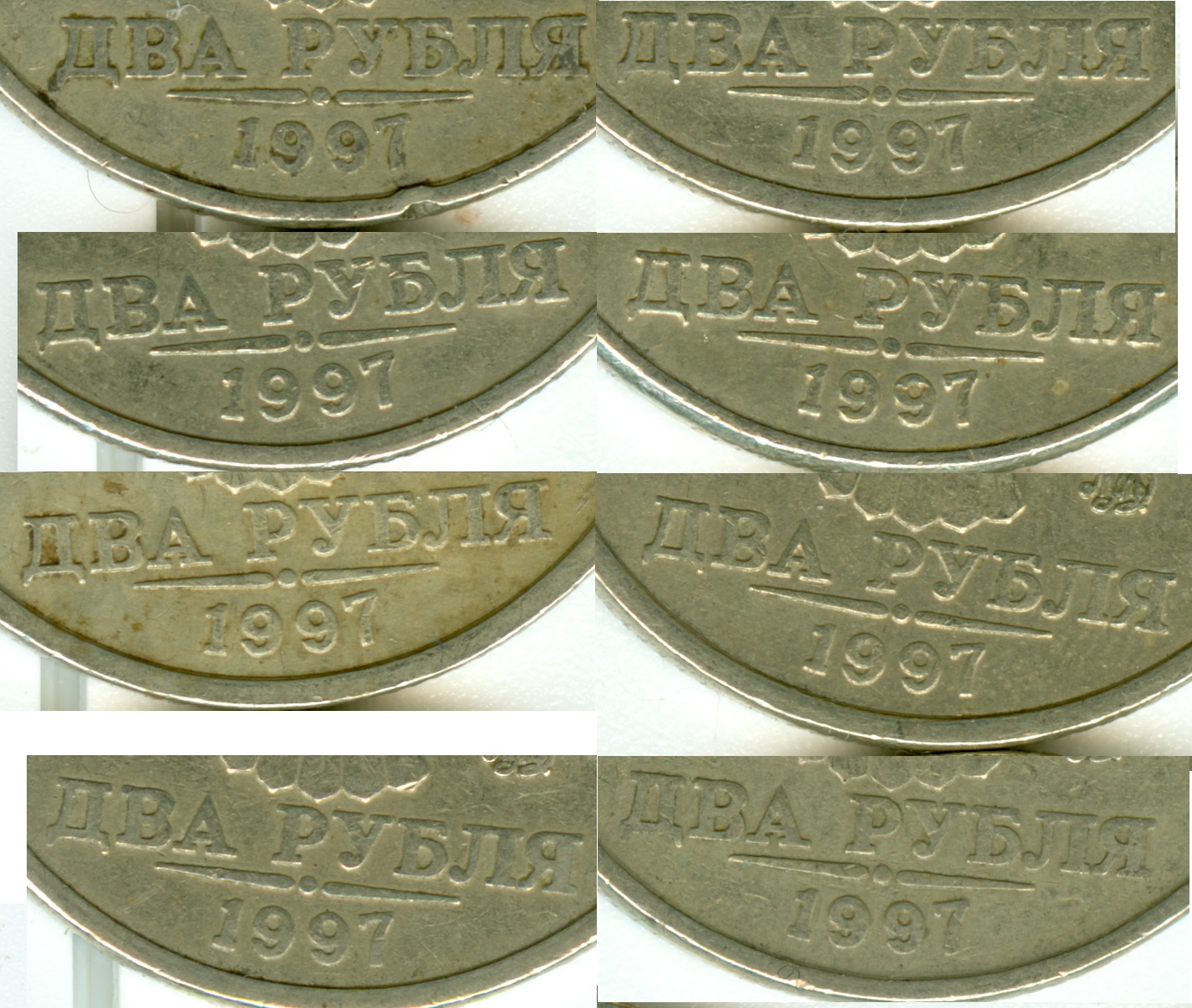 Разбираюсь с кучей отложенных монет. Помогите пожалуйста разобраться с разновидностями аверсов. Верхнюю строку определил как А1, вторую сверху как Б, третью как А2, а вот четвертая - загадка. Это А1? Или Б?