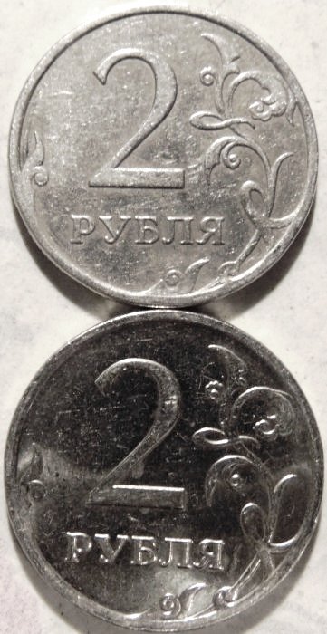 Добрый день уважаемые форумчане. Вот такая двушка попалась, по цвету как стальная, можно сослаться, что была короткое время в обороте, но вот реверс, посмотрите внимательно, что с изображением? Уставший штемпель с последующей шлифовкой? Отличия очень хорошо видны.