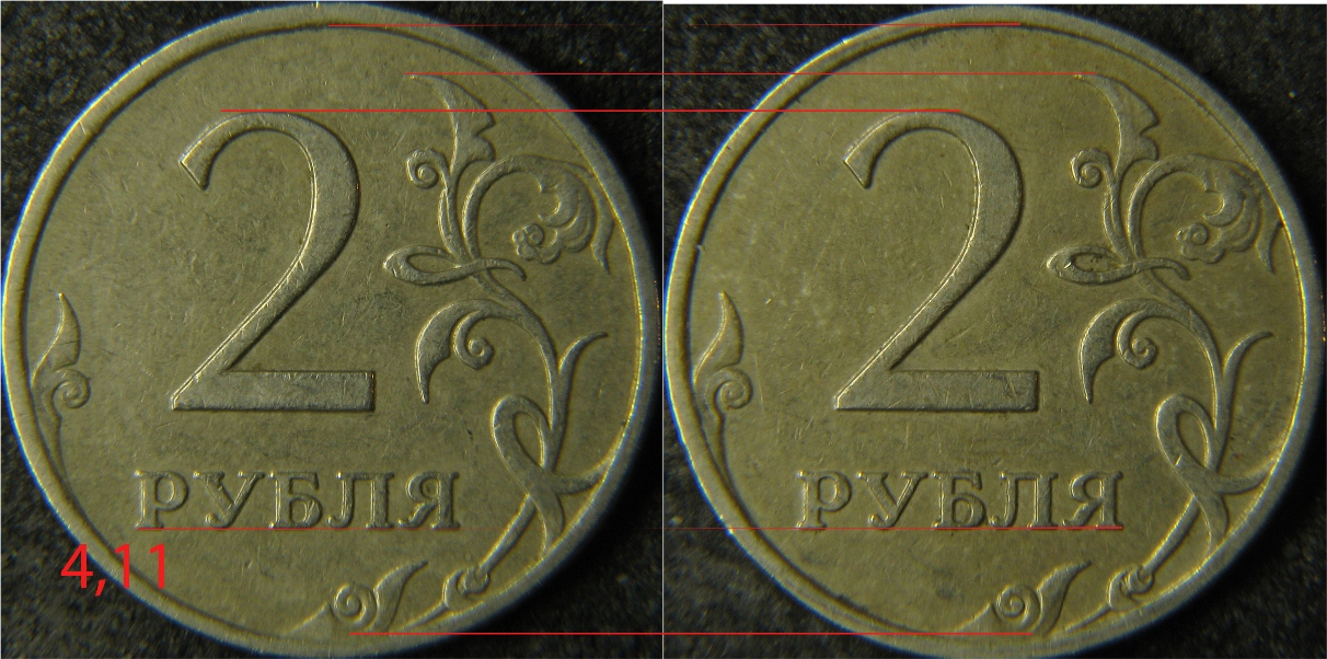 1. Обе монеты 4.11А, но реверс второй монеты больше. Что это обычное явление, износ штампа, или что то другое? высота профиля похоже одинаковая.