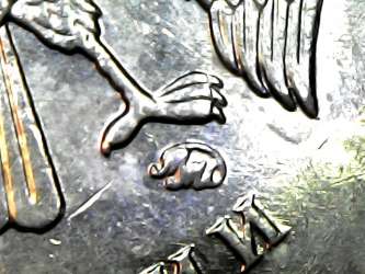 Вижу подкованную блоху на аверсе под лапкой орла, а вот саму минтмарку не вижу