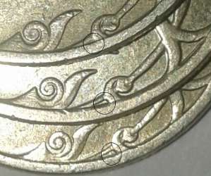 Александр, штемпель в процессе эксплуатации изнашивается, фрагменты рисунка на монете утолщаются, порой приобретая причудливые формы.