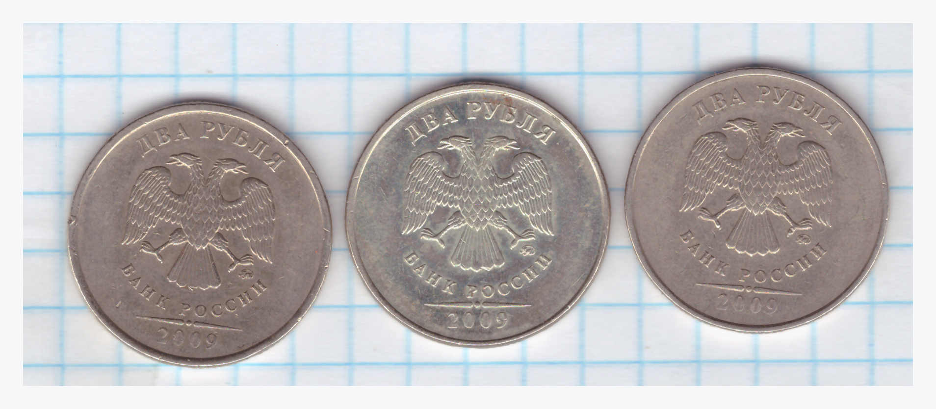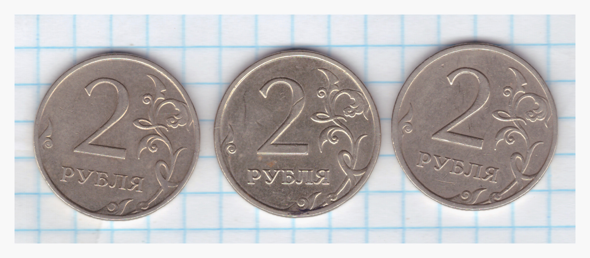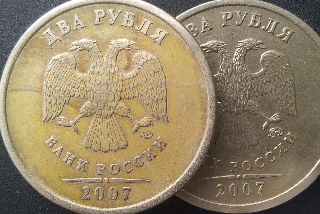 Дошел до 2 руб. и меня привлекла монетка по центру странным состоянием Аверса. Цвет металла как бы другой, да и вроде бы как бы следы от ПРУФа, только вот что они на ходячке из обращения делают.