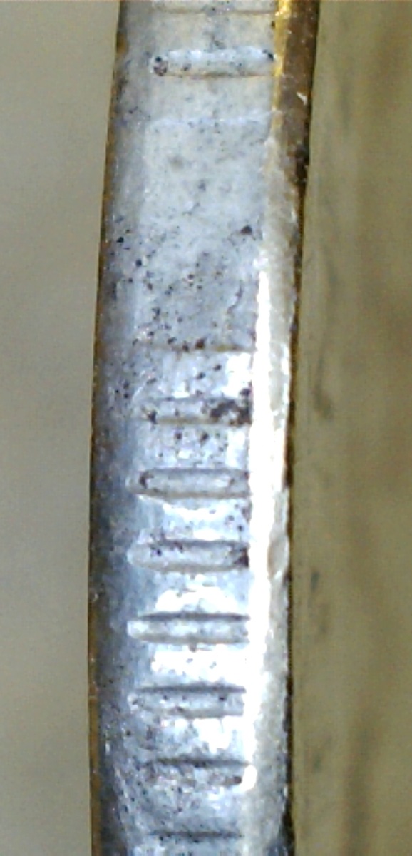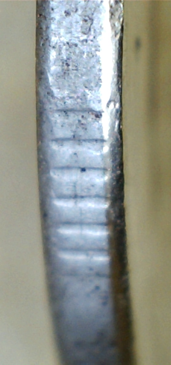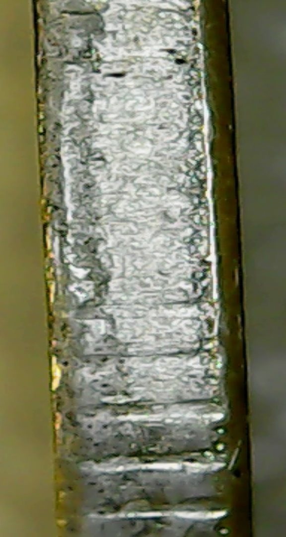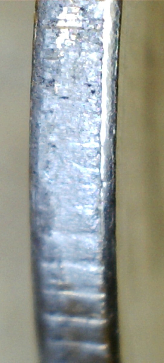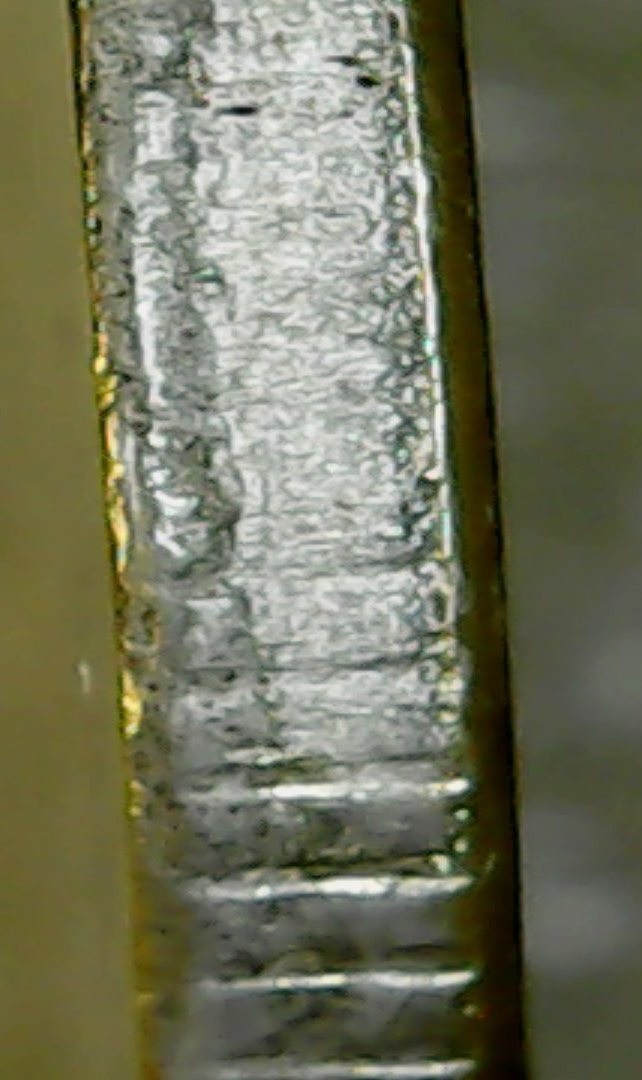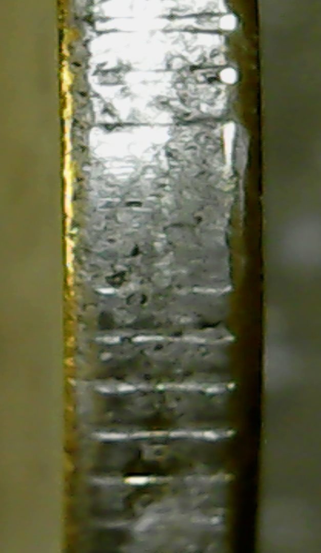 Спасибо за ответы и советы.Сделал новые фото другим ЮСБИ-микроскопом,тут вроде бы фото по понятнее.Чётко прослеживается нависание "плакироовки" над гуртом.Раствор "Универсальный для чистки монет" Leuchtturm.Монетку с гальваникой кинул,результат сообщу.Фото делал под углом.