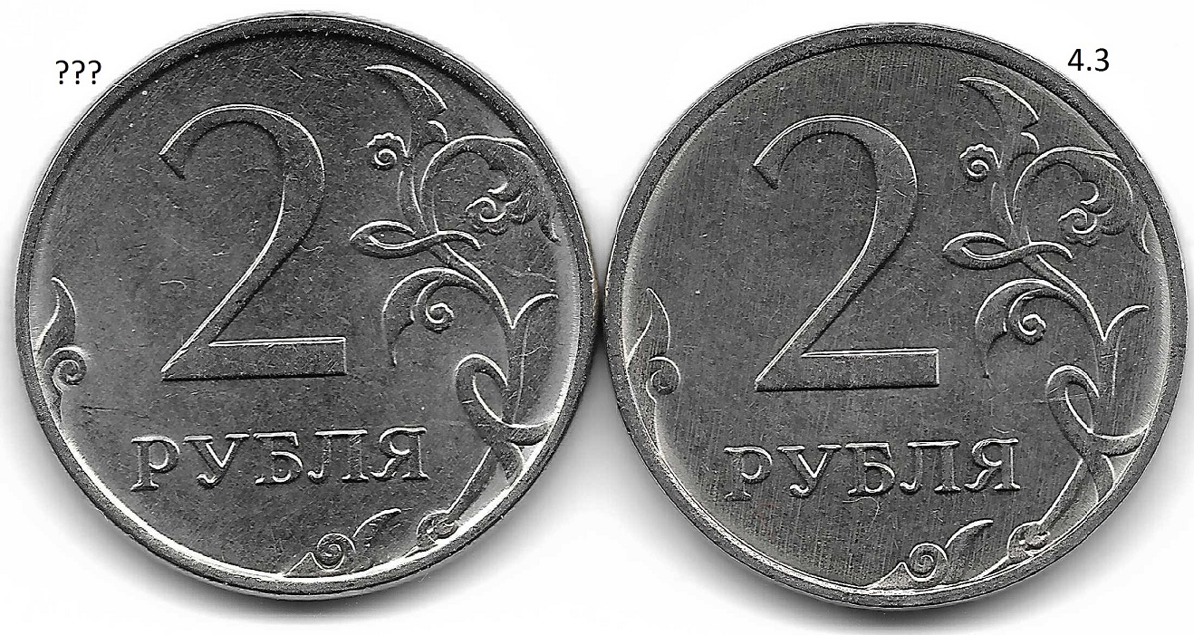 вдогонку - обратите внимание на буквы "Б" монет, у левой низ кружка на одной линии, у правой он , как положено, свисает