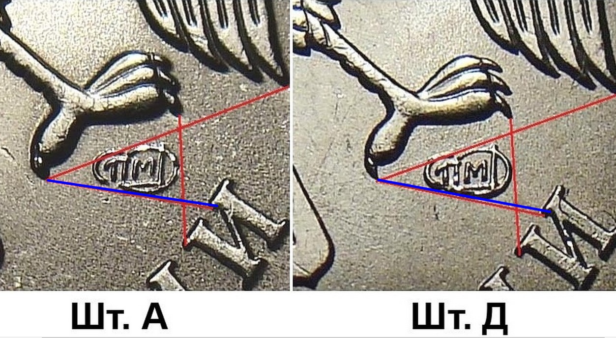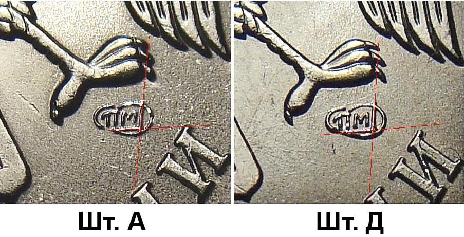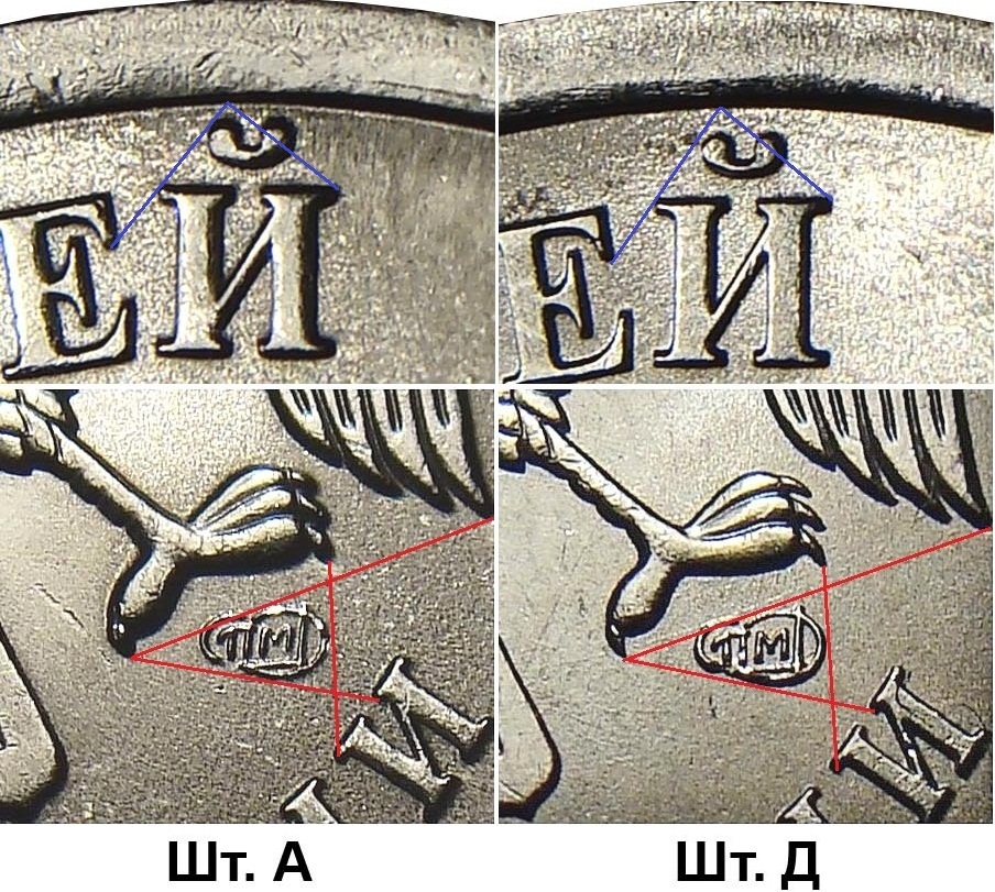 Но знак монетного двора на А и на Д выглядит одинаково при подобном расчерчивании.