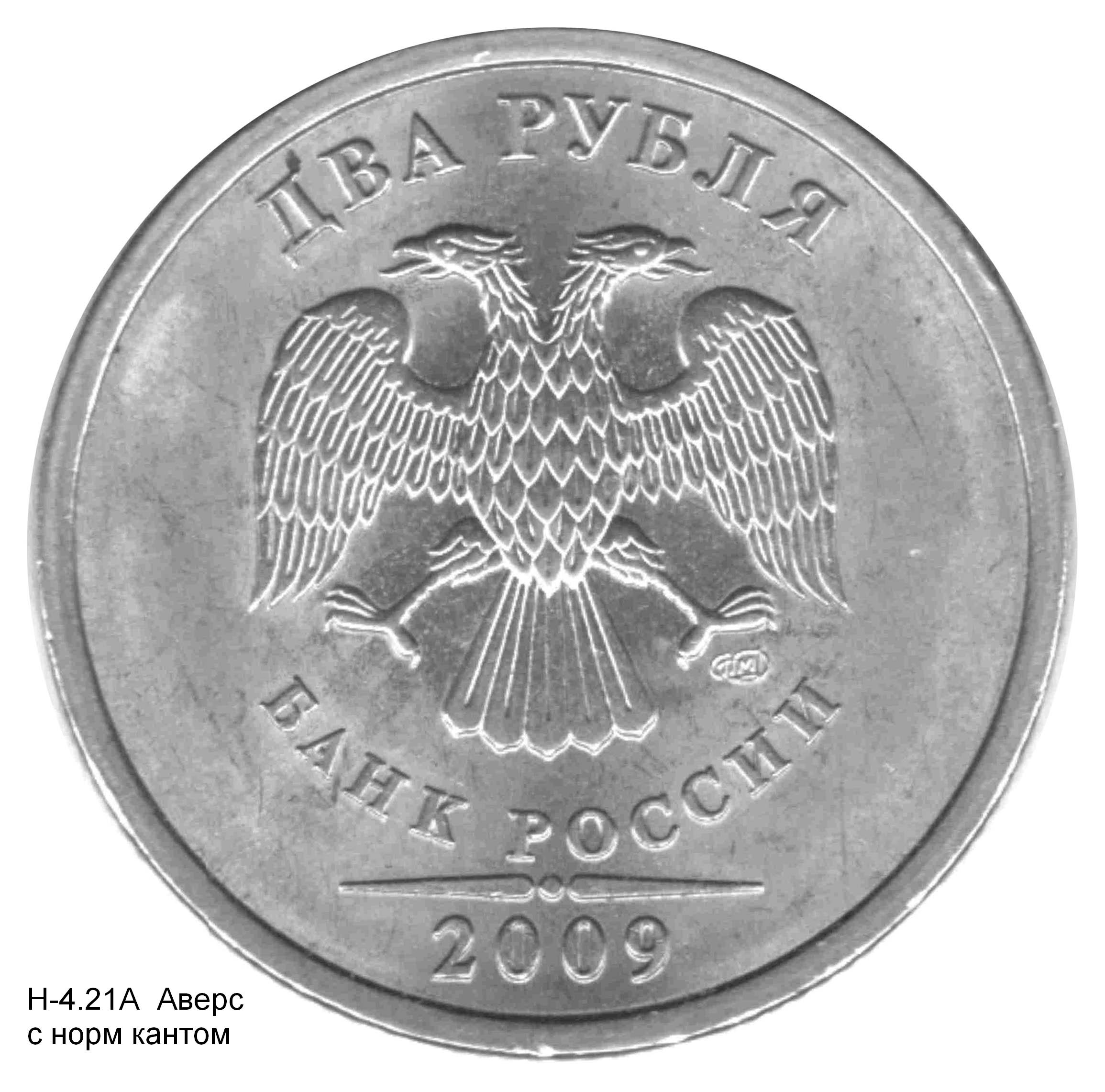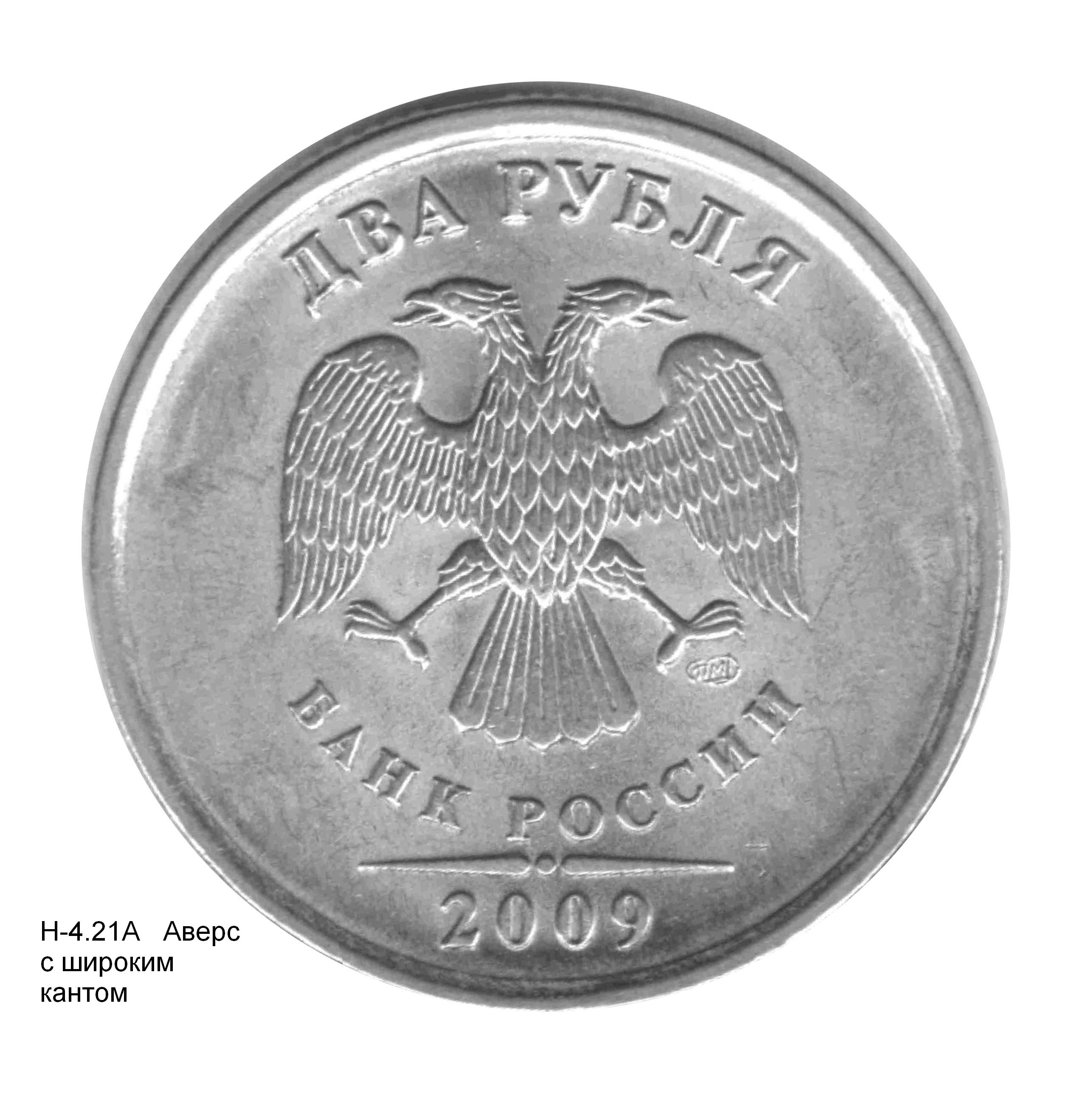 2009года номиналом 2 рубля шт.Н-4.21А оказалась одна у которой круговая надпись на аверсе визуально выглядела более приближенной к защитному канту, чем на остальных. По замерам экранной линейкой – изображение(орел) практически одинаковое (в пикселях 1347 против 1345), а поле значительно уже (1986 против 1998), то есть кант шире. Циркулем то же ловиться разница.