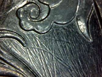 а с чего вы взяли что именно монета царапанная, а не штемпель?
