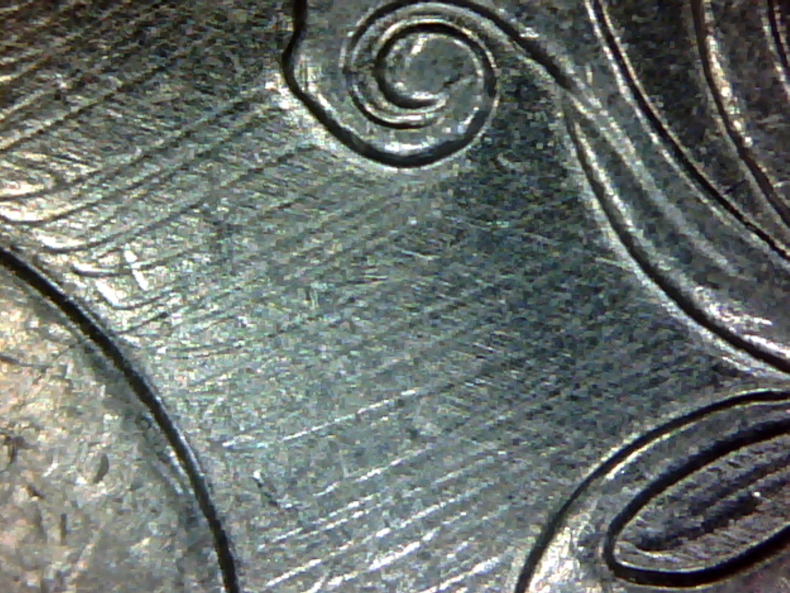 А с того, что если бы на мондворе изнасилованный такими царапинами штемпель (попробуйте ка что-нибудь нацарапать на инструментальной стали) и пройдя (что совсем из области фантастики) несколько уровней контроля отчеканил бы монету, то на последней были бы выпуклости, а не царапины.