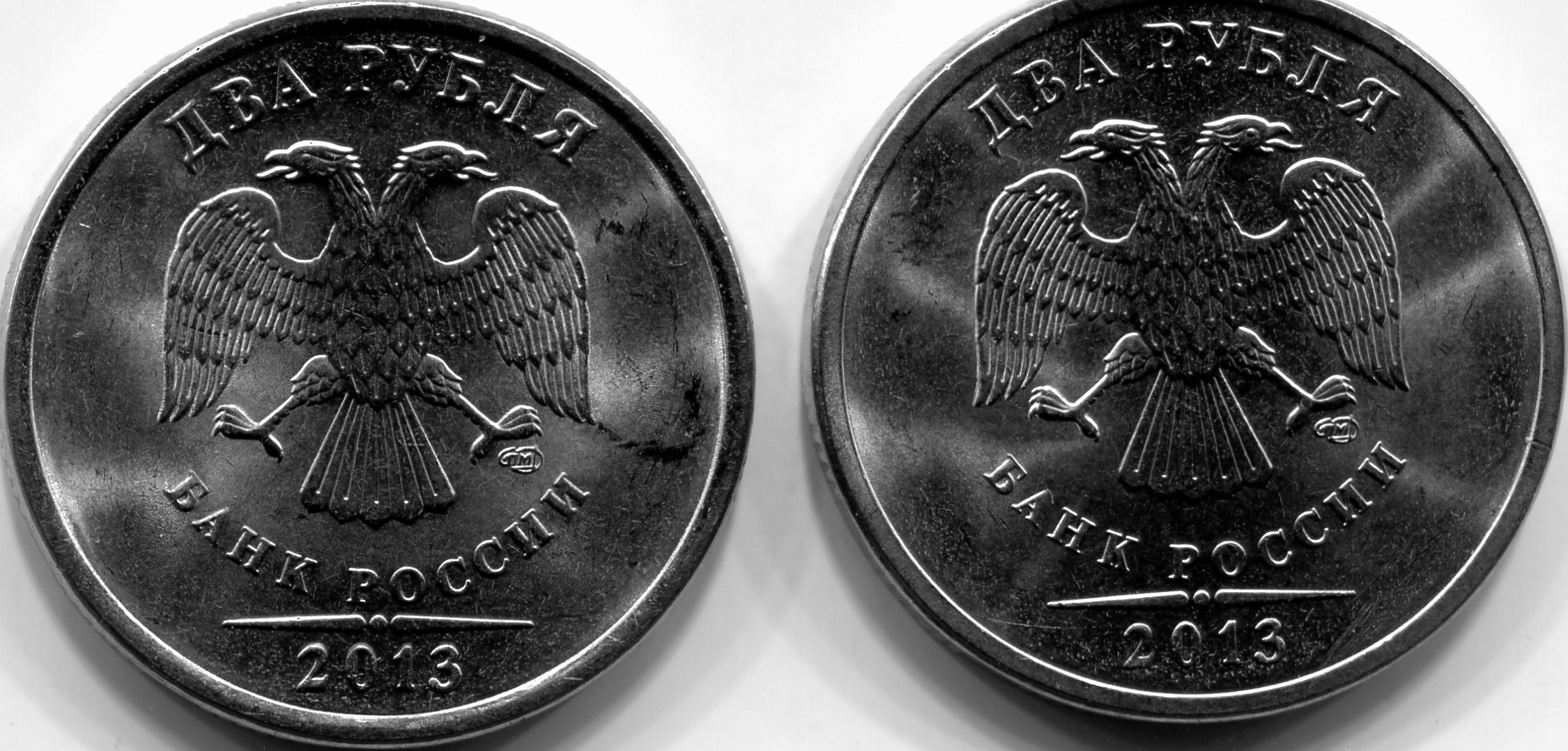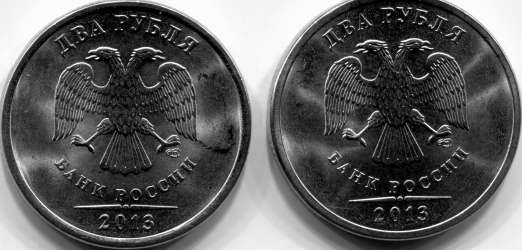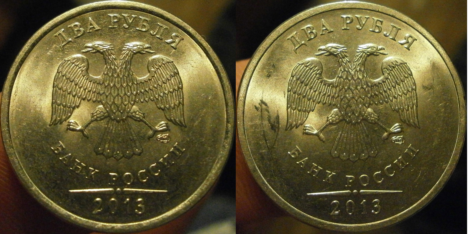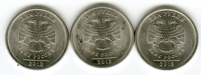 Сегодня попалась 2 руб. 2013 СП . Левая монета . Надписи приближены к канту , 2013 цифры толще .