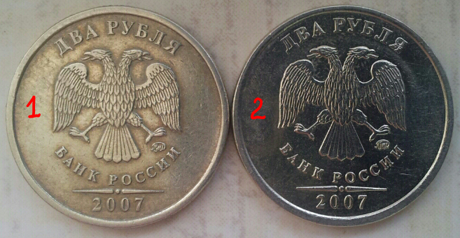 Здравствуйте знатоки и любители. По теме: Недавно комплектовал двушки седьмого года, перебрал кучу, собрал все. Но одна монета сломала мне голову, мучился три дня, крутил со всех сторон, сравнивал (на моих фото она под номером 1), в итоге сделал заключение: 1-4.11 Г, 2-4.12Г(к сравнению). Различия монограм не вижу, а вот реверсы явно отличаются по масштабам. Отсюда возник вопрос- если помоему всё верно, то почему шт.4.11 Г не прописан в каталогах по А.С. и Ю.К. Подскажите пожалуйста где я ошибся. С уважением ко Всем.