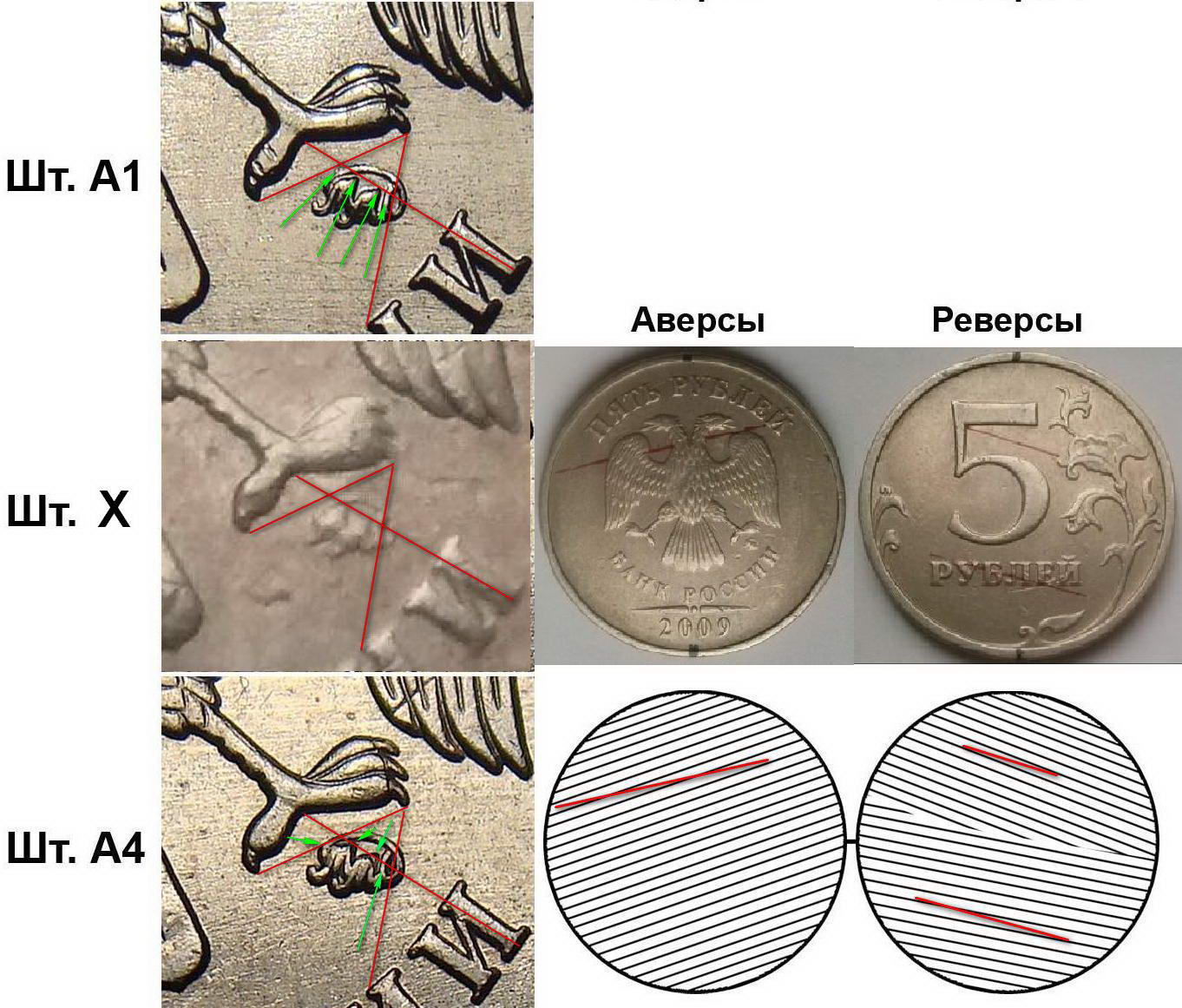 И всё же может кто то обьяснить почему это не может быть засореным Шт.А4? Ведь шлифовка совпадает полностью. И почему на других монетах такой выпыклый слитный знак считают другим штемпелемем, а здесь именно засор?