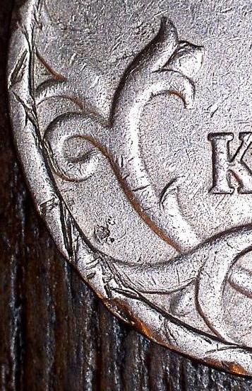 Левая получается 2.3, изображение увеличено. http://aeol.su/5k_description Шт. 2.3. Завиток примыкает к канту, хвостик пятёрки длинный, окантовка нижнего бутона почти полностью утрачена, кант широкий, изображение увеличено.