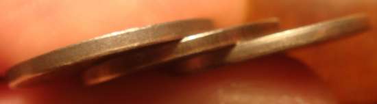 Я сравнил Ваши сканы гурта -у меня точно такой же равномерно белый гурт и цвет другой!