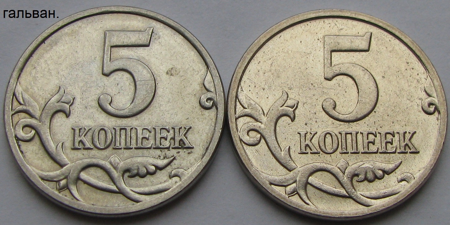 5 коп.2008 гальваника по цвету из общей массы выделяется,трудно не заметить.