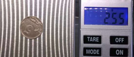 Как видно, гурт монеты с "рифлением" потоньше, при одинаковых диаметрах и практически равном весе.