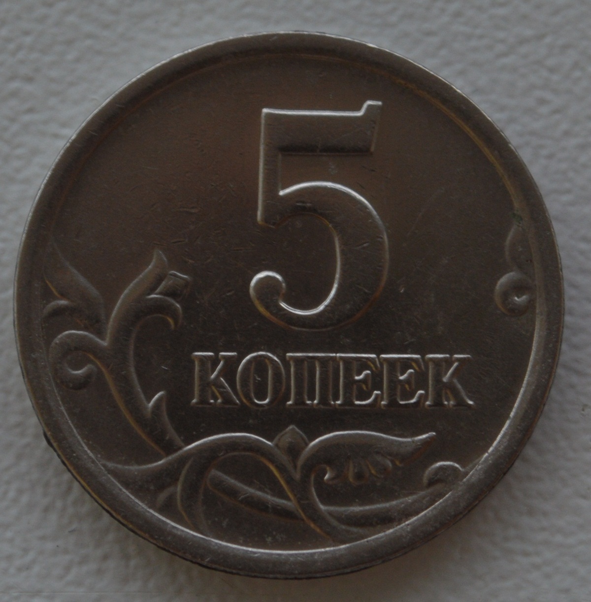 Ножка первой буквы «К» срезана, пятерка высокорельефная, окантовка нижнего бутона почти полностью отсутствует.