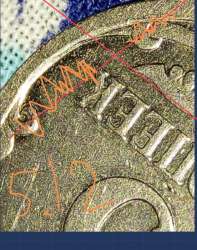 Там действительно какой то дефект. Но есть фото в сравнении со шт. 5.12 который снизу. Посмотрите на расстояние до канта некоторых орнаментов?