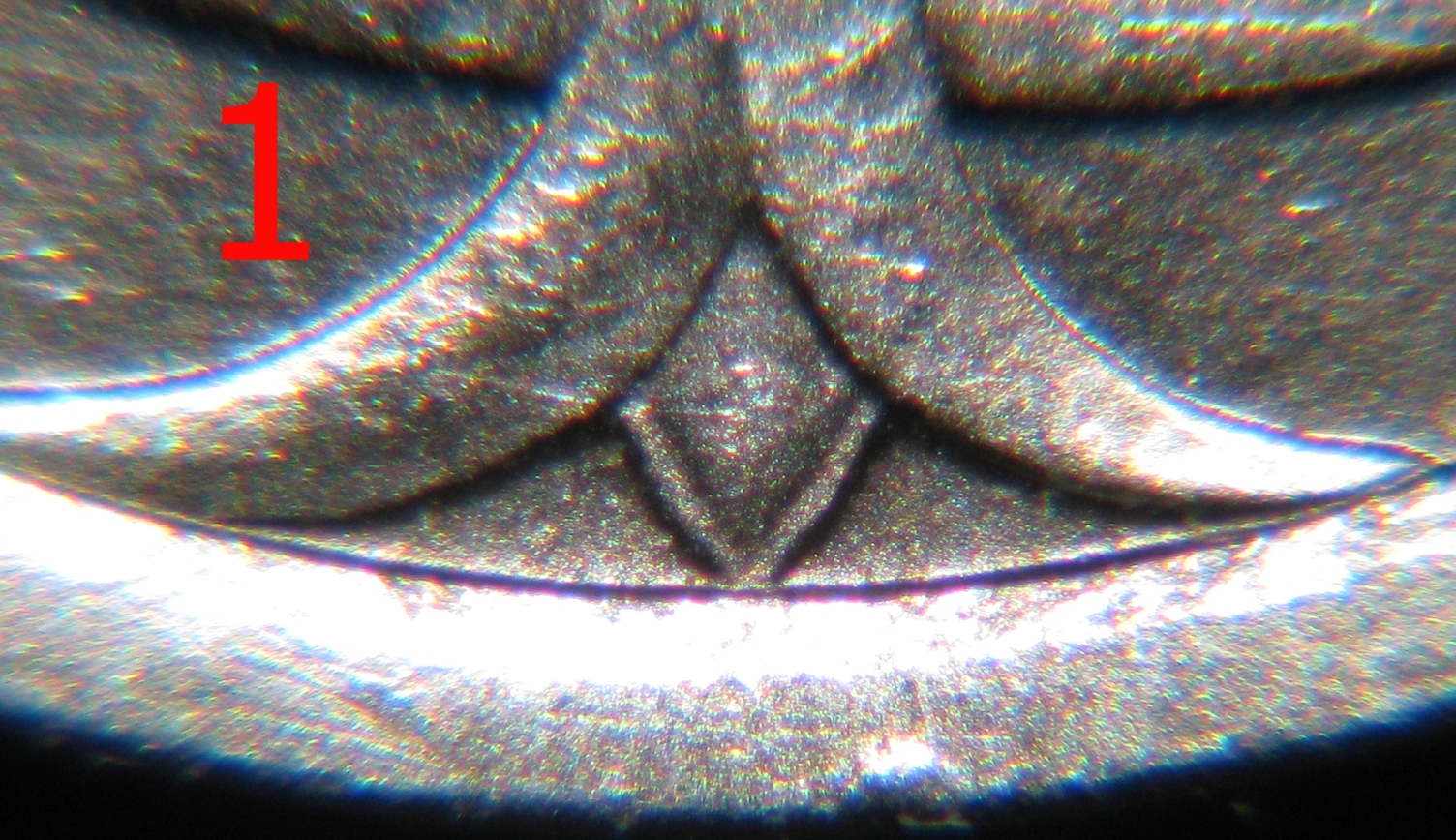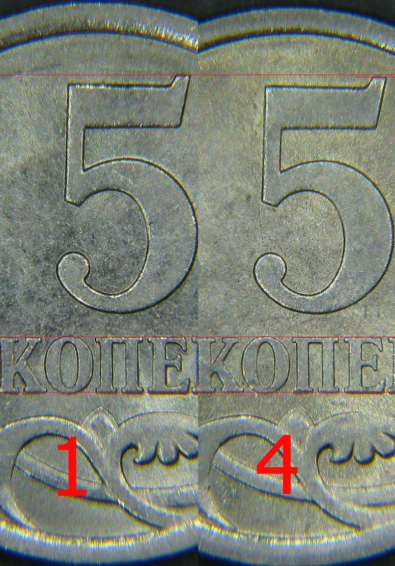 Ну и обратите внимание, что на монете 4 более уставший штемпель - рельеф ниже и линии рисунка менее четкие. То есть, границы рисунка уже не те, что на монетах, отчеканенных свежим штемпелем.