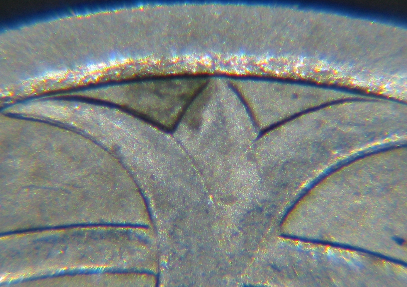 Спасибо за подсказку, а то не мог понять как считать вторую линию, то ли подшлифовка, то ли двойной удар или сдвиг во время чеканки. Пересмотрел по вашему методу 2008М пока ни чего интересного (ГА) не увидел. Пытался фотографировать, но шлифовка очень плохо видна, хотя на гурте следов металла нет. Буду продолжать раскопки.