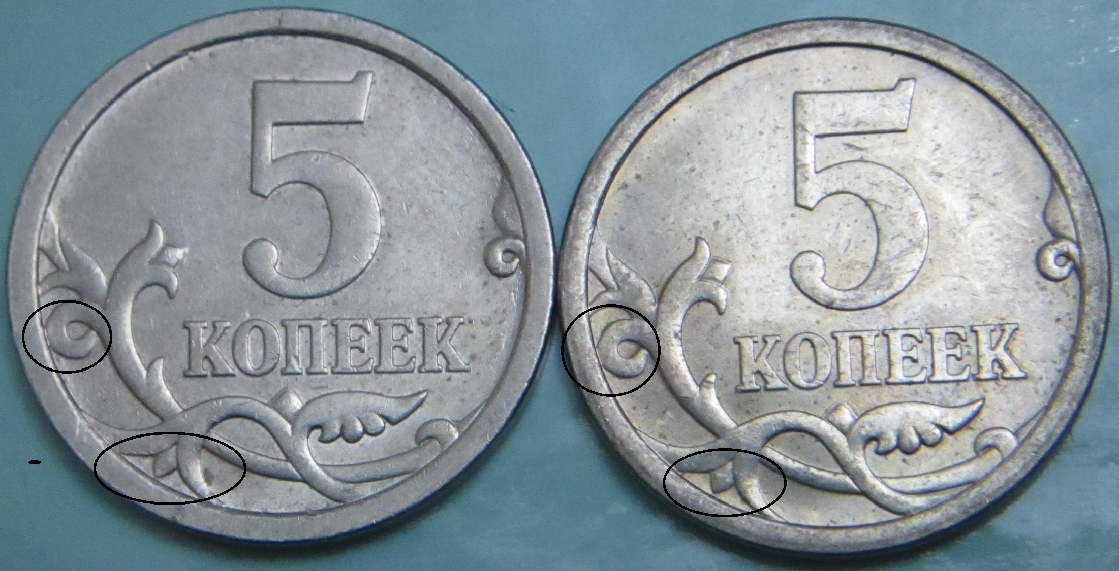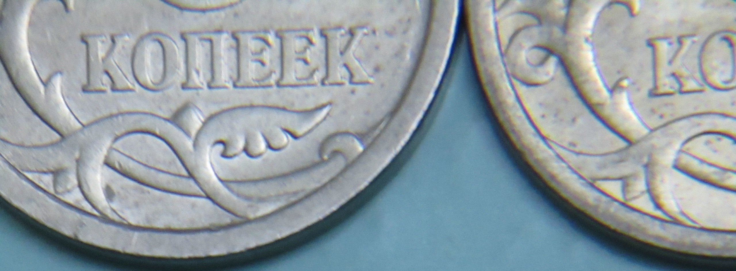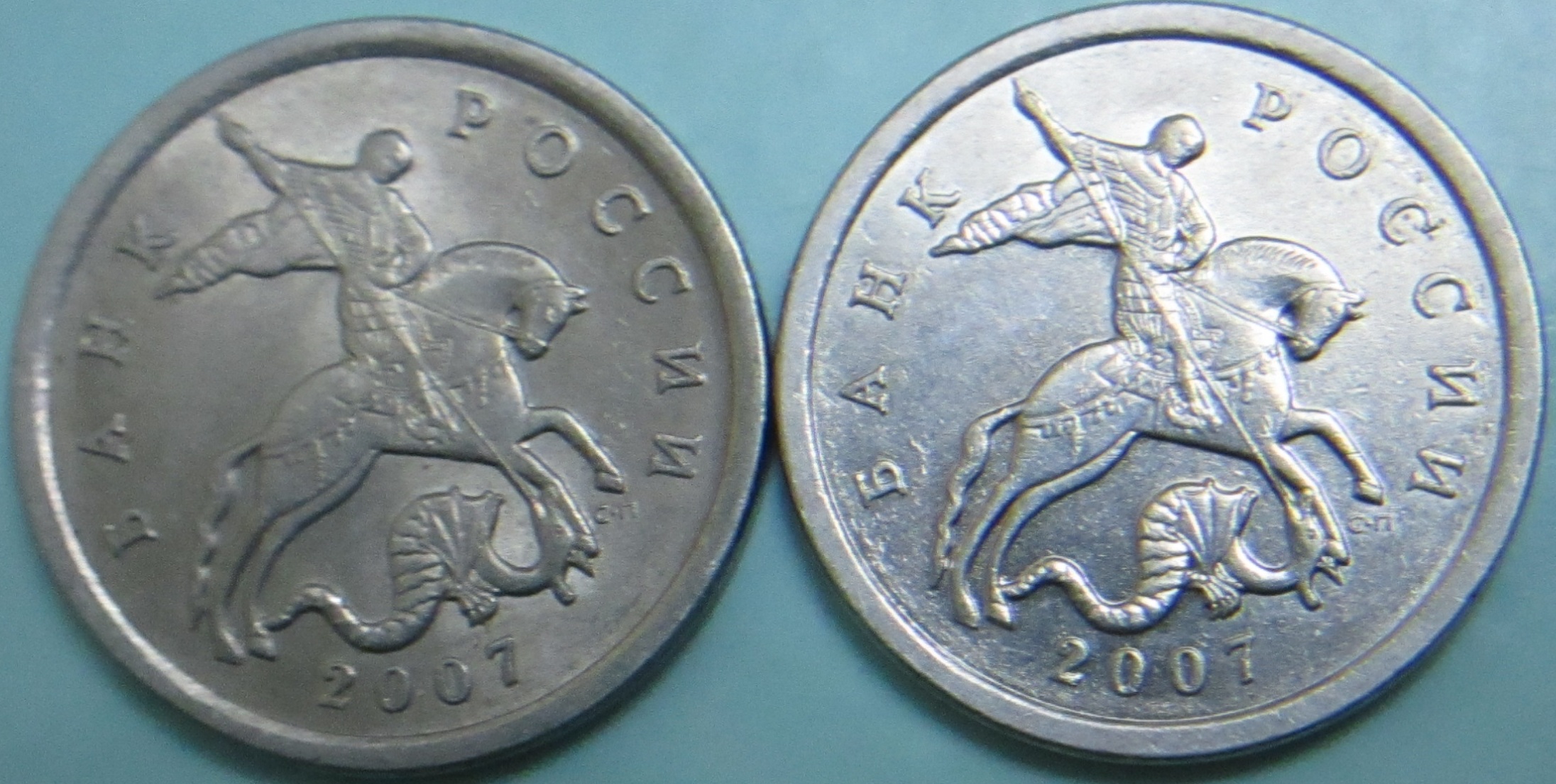 У вас фото смазано, левая монета видна плохо - не понятно, что с чем сравнивается.