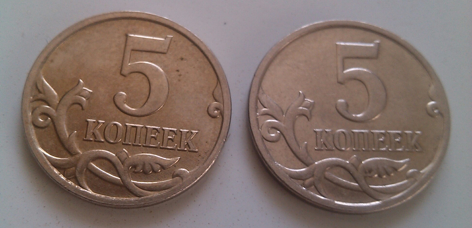 Попадаются,такие монеты.5 копеек 2003,2005(именно М)