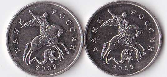 Здравствуйте. Попалось вот такая монетка,та что с лева.Фото только такие,лучше сделать не мог.Мне кажется что разные,а здесь в каталоге только разновидность одна.Может я и не прав.С ув.Андрей.