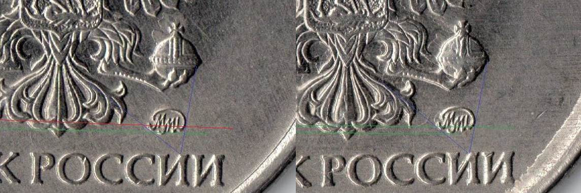 Возьмите 2 монеты одной разновидности но с разным износом рабочего штемпеля.