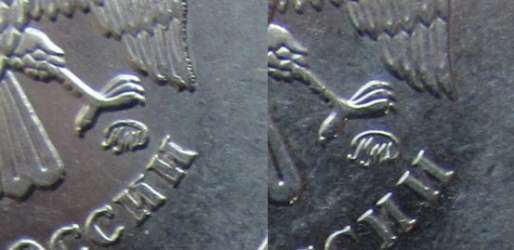 Уж очень большая визуальная разница в размерах,левый,понятно-убитый.правый,значит тогда,шлифованный?
