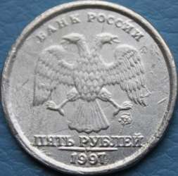 В 1997, когда 5 рублей еще были деньги (даже купюра пятирублевая была), появились такие фальшивки. Наверное одна из них.