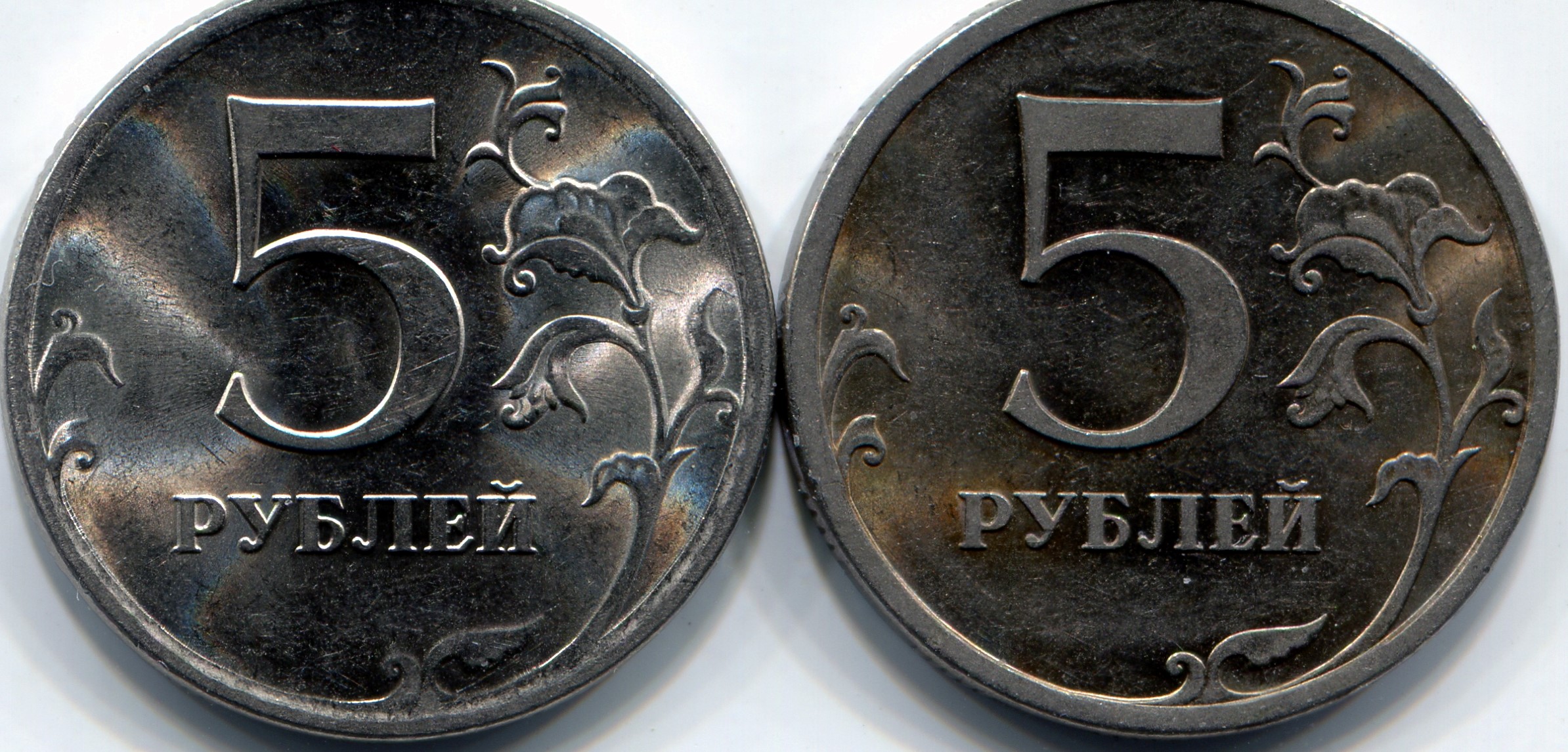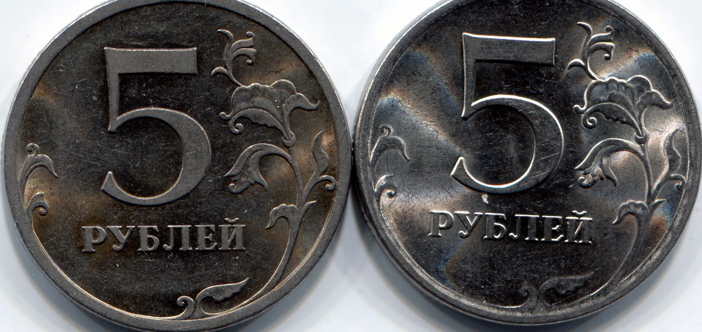 Здравствуйте . В связи с находкой 2 руб .2009 СП . с мельхиоровым покрытием , возник вопрос . 5 руб . 2009 СП . Шт. Н- 5.22 А . Была найдена в 2013 . Когда попалась подумал старого образца . Потом когда стал разбираться с отложенными монетами , определил Н - 5.22 А . , удивил цвет монеты . Сейчас когда возникла тема вспомнил про неё . Патина на монете похожа как покрывается мельхиор . Серо - коричневый оттенок . Гурт не могу показать нет возможности , но в ближайшее время будет . По гурту патина темнее у просечек между светлее . Магнитится . Может и ошибся просто влияние внешней среды , поправьте . Монеты меня местами , для сравнения . Склоняюсь к тому , что это внешний фактор .