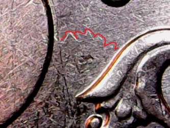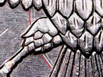 У меня возникли затруднения в определении штампа 5 руб 2010 ммд. Монета довольно сильно затёрта. Шлифовку не разглядеть. Некоторые вторичные признаки всё же видны (продублированы красным цветом). Аляска едва различима и чёткое фото не сделать. На лицо признаки Б4, но знак мон.двора расположен ниже. Не знаю что и думать. Если по фото кто то сможет определить, то прошу помочь.