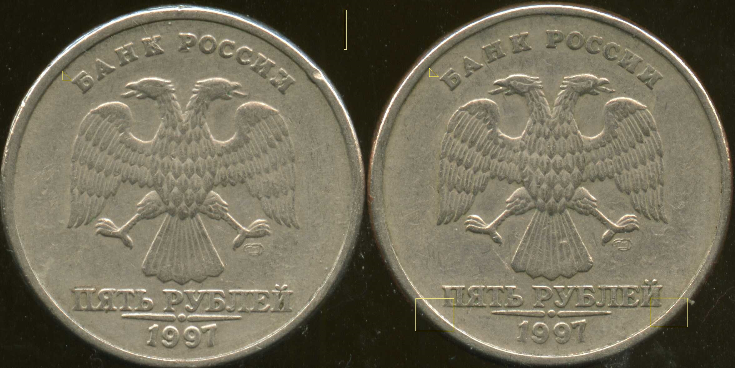 Копался в монетах на предмет короткой 7 на всякий случай. Вот что обнаружил расстояния от канта до надписей разные В Верху разницу можно списать на толщину канта. Но внизу отмеченное квадратами кант шире расстояние больше .