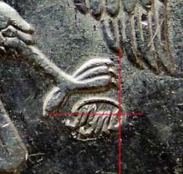 Посмотрел под лупой обе монеты.Дужка у обоих одинаковая-левая часть короче.А вот просечки на перьях разные-на одной узкие,на другой широкие.Как это объяснить?