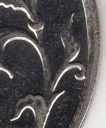 У первой монеты знак сдвинут влево по-моему.