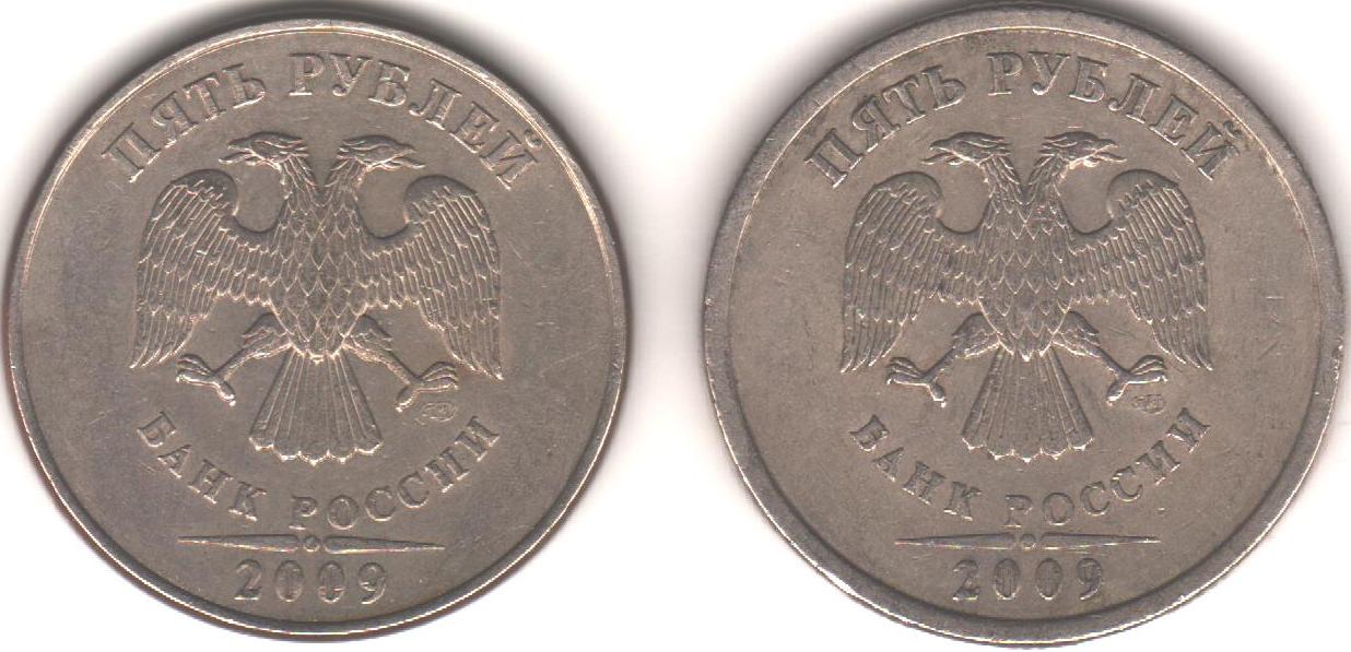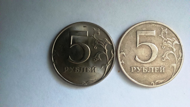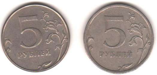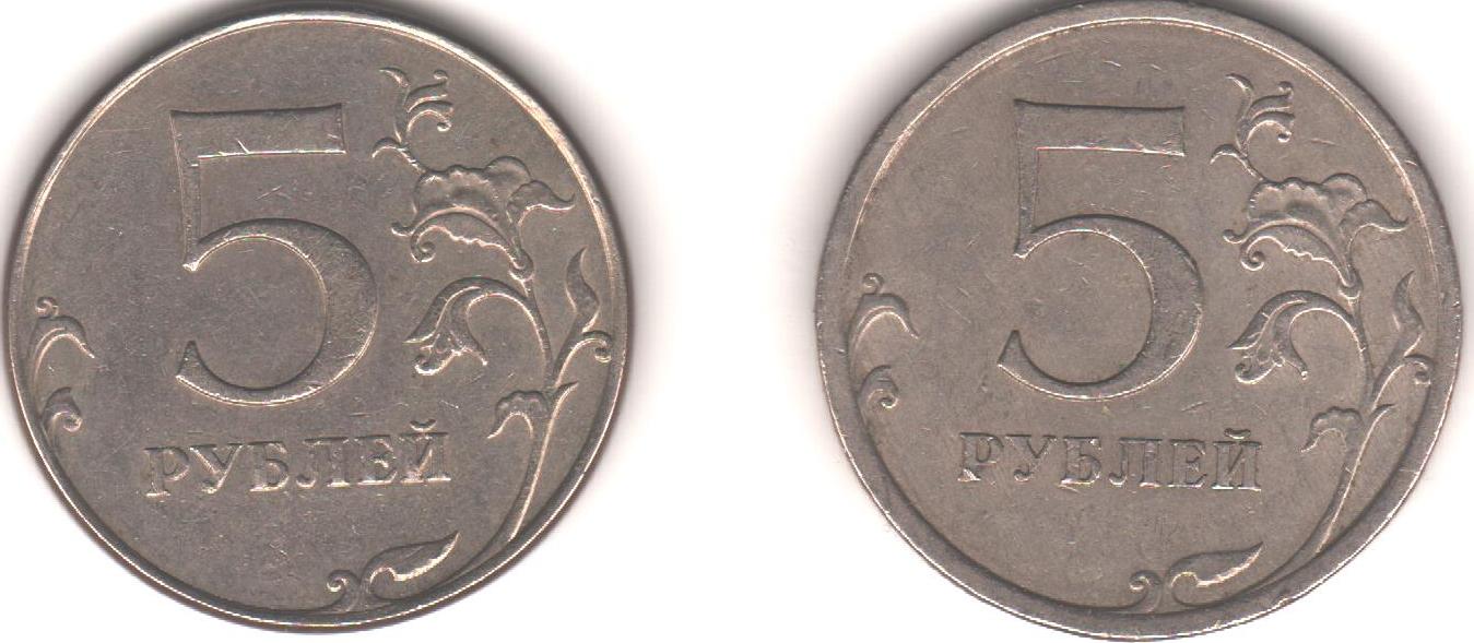 Кант тоже очевидно отличается, причём, скорее всего, интересна первая монета, поскольку основная масса питерских 5-рублёвок этого года имеет широкий кант.