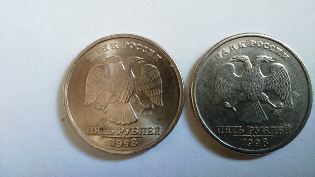 Здравствуйте! Тот же вопрос про толщину канта - только 1998г и по сохранности монеты, год одинаковый а левая выглядит лучше чем правая.