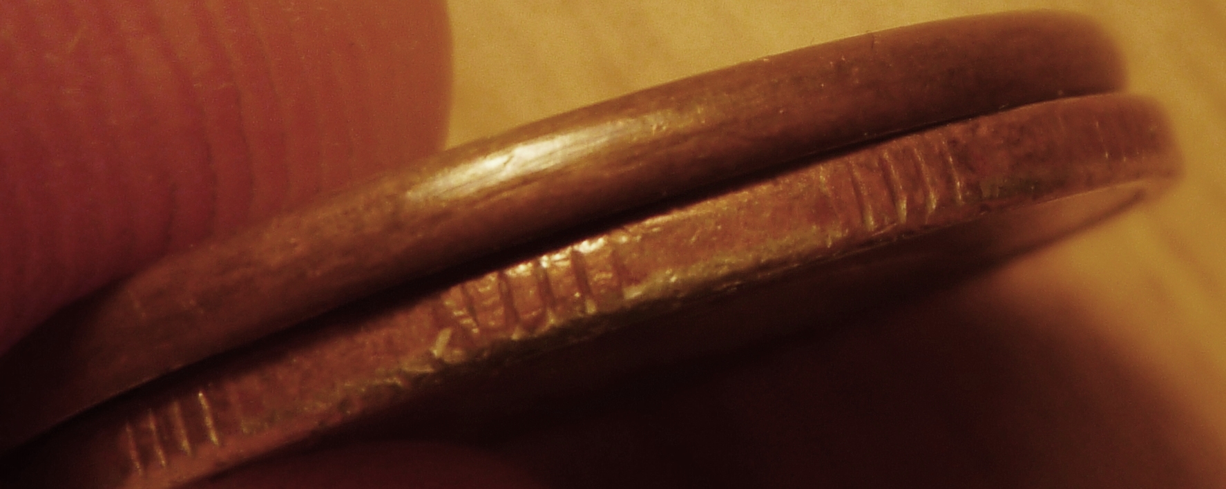 И - пусть меня поправят мэтры, если я не прав - на меньшей заготовке гуртовые насечки должны быть слабее проявлены, или вообще отсутствовать (край может быть просто сточен).