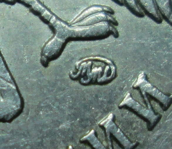 чуть выше монограмы хорошо видна полоска(царапина штемпеля)