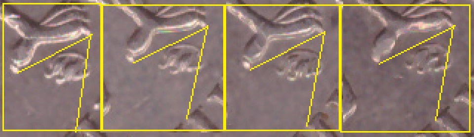 Чисто по шлифовке ничего определить нереально, да и пробовал сканировать и определять по расположению знака монетного двора, тоже ничего не понятно! Знаки почти на каждой монете в разном положении, То немного смещен влево, то вправо, то немного приподнят, то опущен! Вот пример.