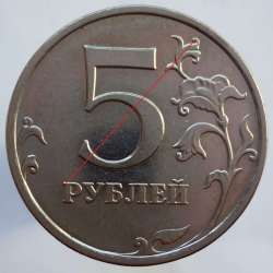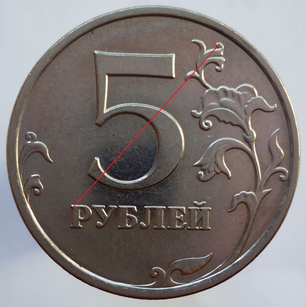 3-И наконец самый чёткий.Верхний угол (под гардой)буквы Р в слове РУБЛЕЙ,по диагонали до середины точки.