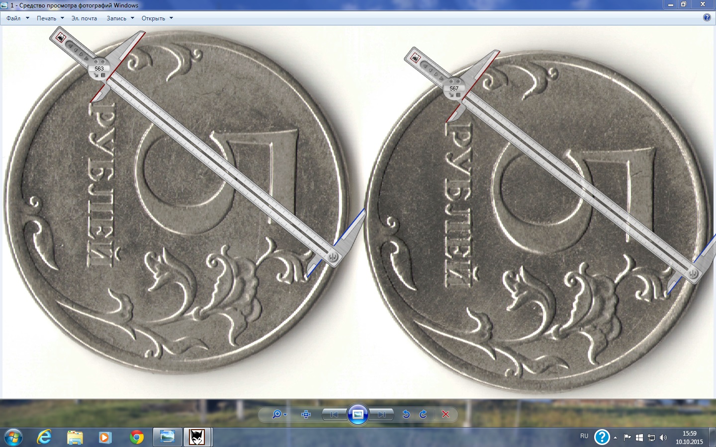 Промерив 20 монет раздели на две части (с уменьшенным и с увелич. масштабами). Затем отсканировал парами. Проверил 5 пар. В 4х подтвердилась разница в масштабе. Выкладываю на ваш суд. Ваше мнение