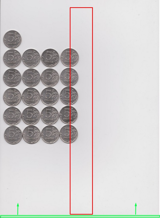 Думаю, что для того, чтобы понять существенность искажений своего сканера, можно не заполнять все стекло, а ограничиться и 9-ю монетами, расположив их 3х3.
