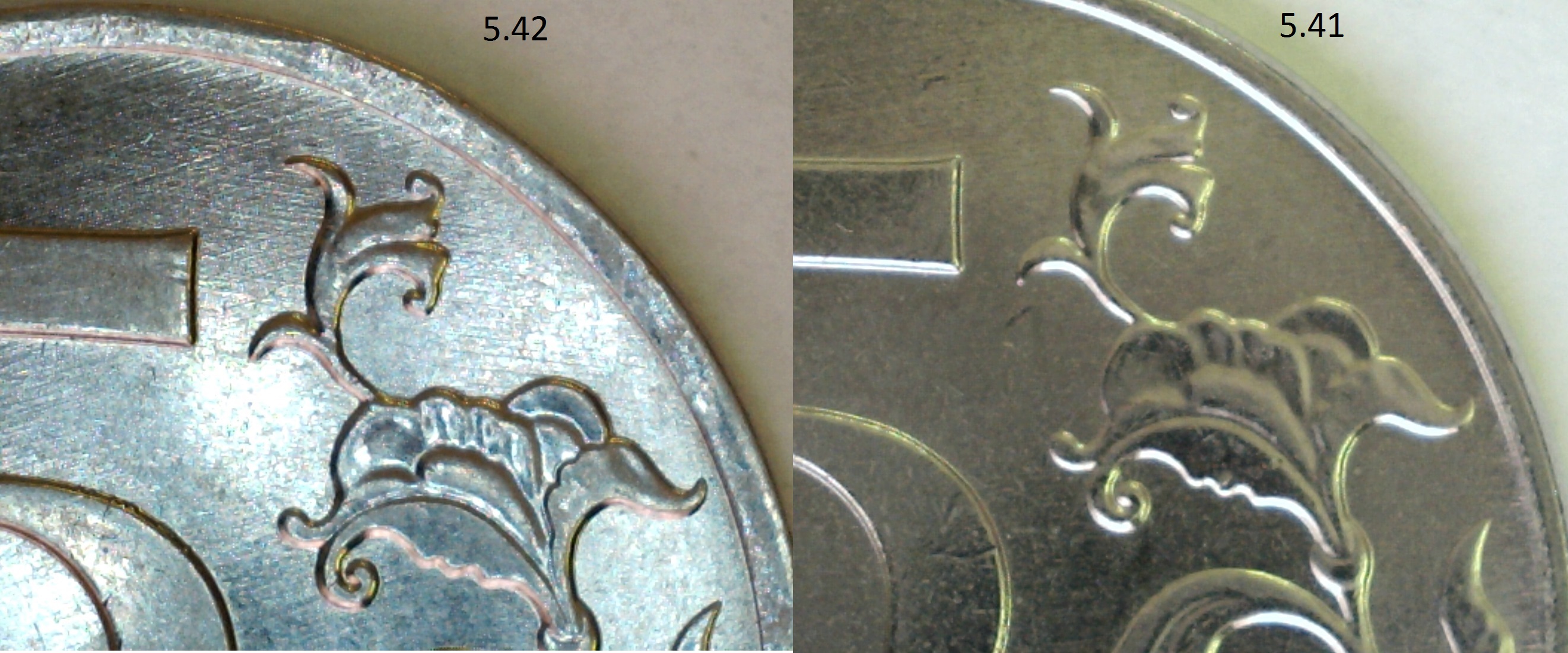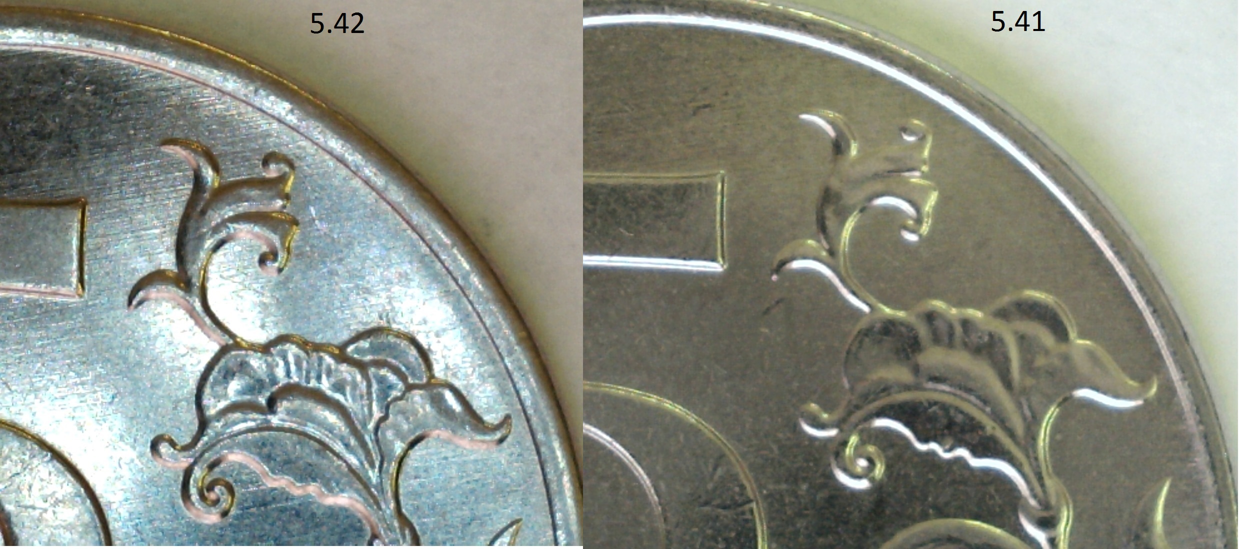 тогда померив изображение точной 5,42 и предпологаемой,можно точно сказать что вторая монета принадлежит к шт 5,42 или нет!