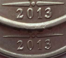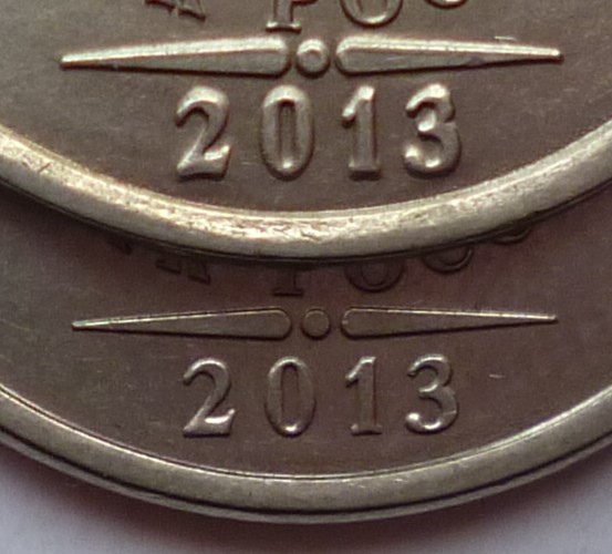 прошу помочь в определении 2 монет(подшлифовка штемпелей?)даты на обоих монетах более толстые, аверс--дужка буквы Й ближе к канту (имеется ступенька у канта(продолжение канта?),на одной монете точка не касается разграничительной линии над датой,у другой касается...приведены в примере с обычной монетой ,аналогичной той, которая представлена в каталоге ...заранее благодарен в помощи.